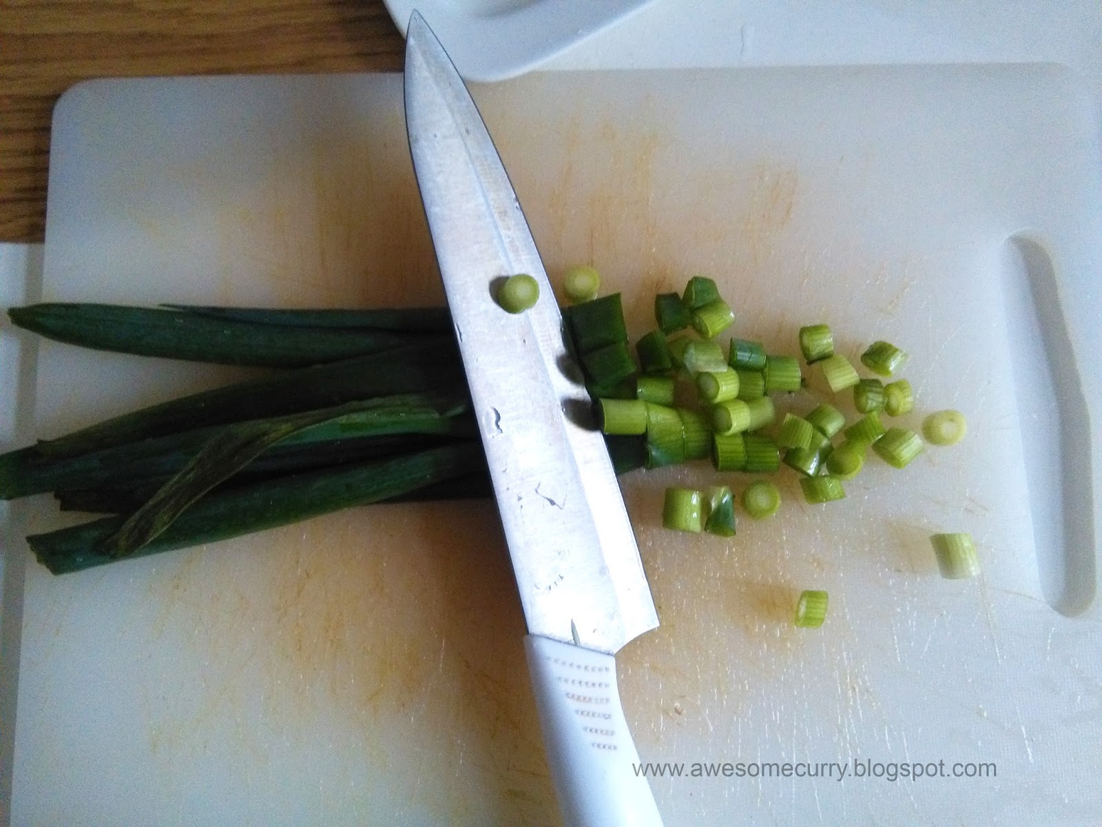 10. Измельчите зеленый лук и добавьте к острой пасте.