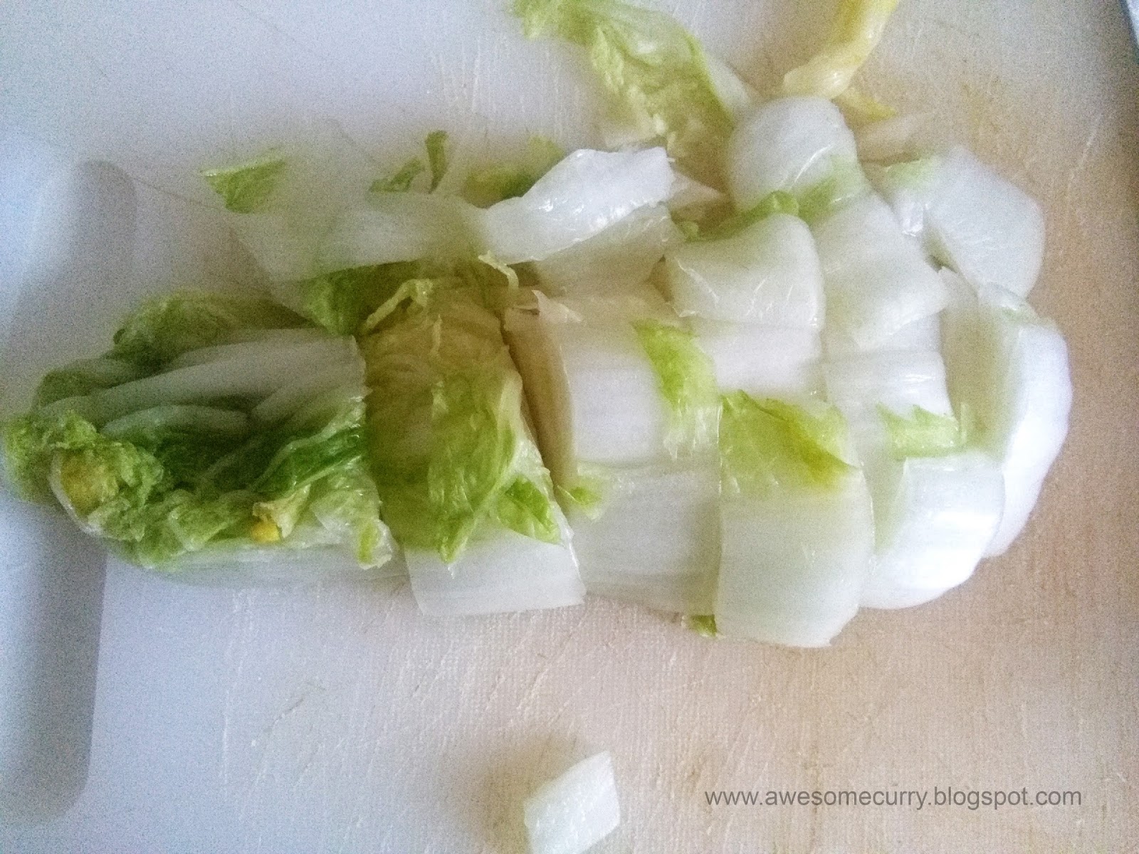 11. Теперь отрежьте от каждого кусочка вашей капусты твердую и невкусную кочерыжку, а листики порежьте на кусочки, которые будет удобно есть.