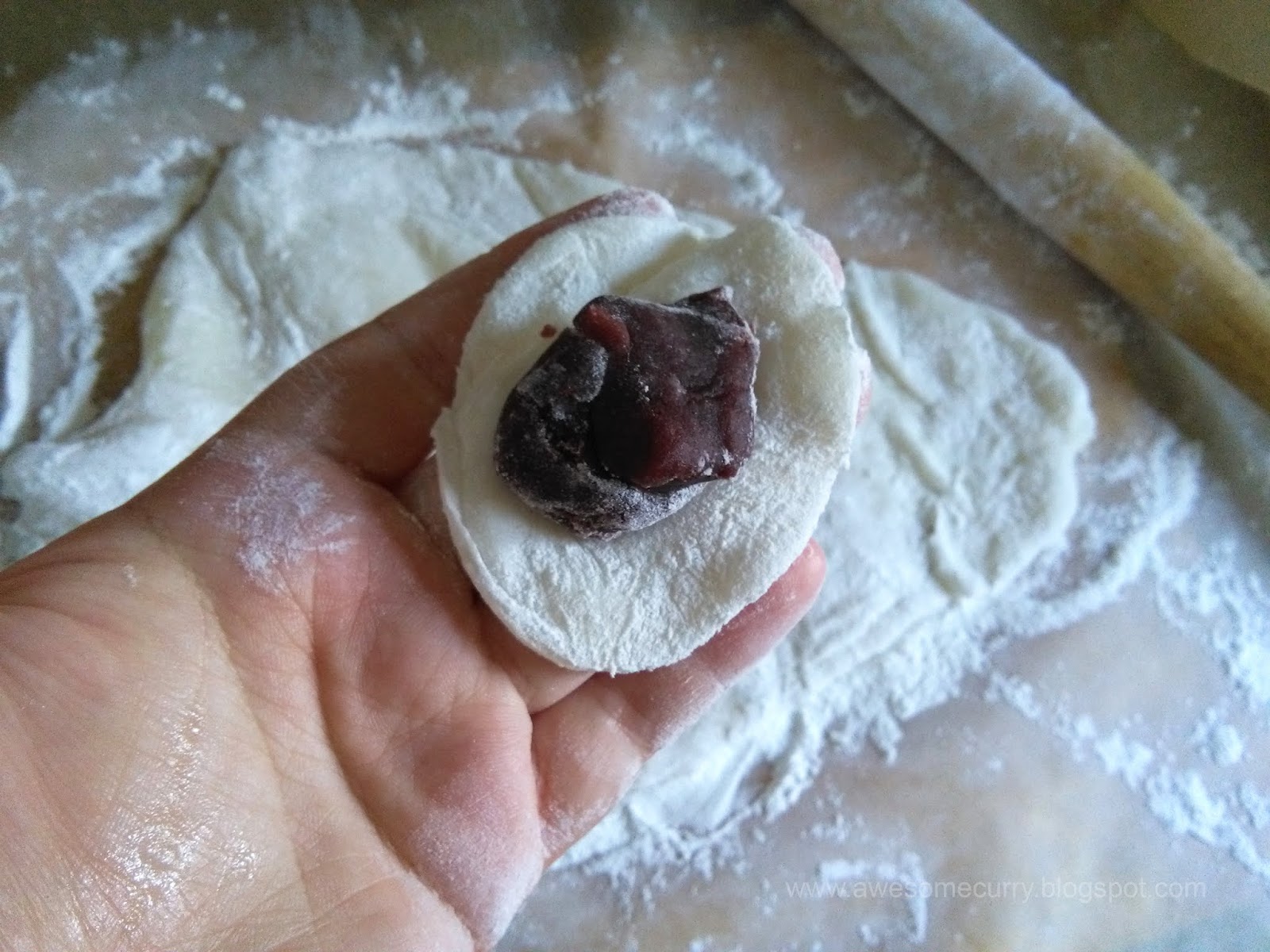 Если вы все же предпочитаете есть именно пирожки моти с начинкой, и ради них затеяли всю готовку,  то переходим к следующему этапу.