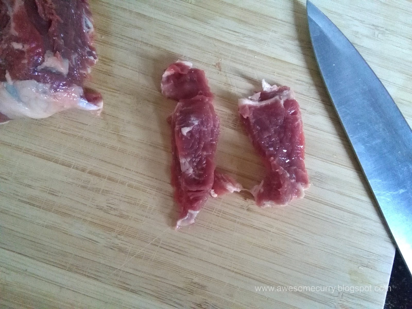 2. Мясо нарежьте тонкими кусочками поперек волокон.