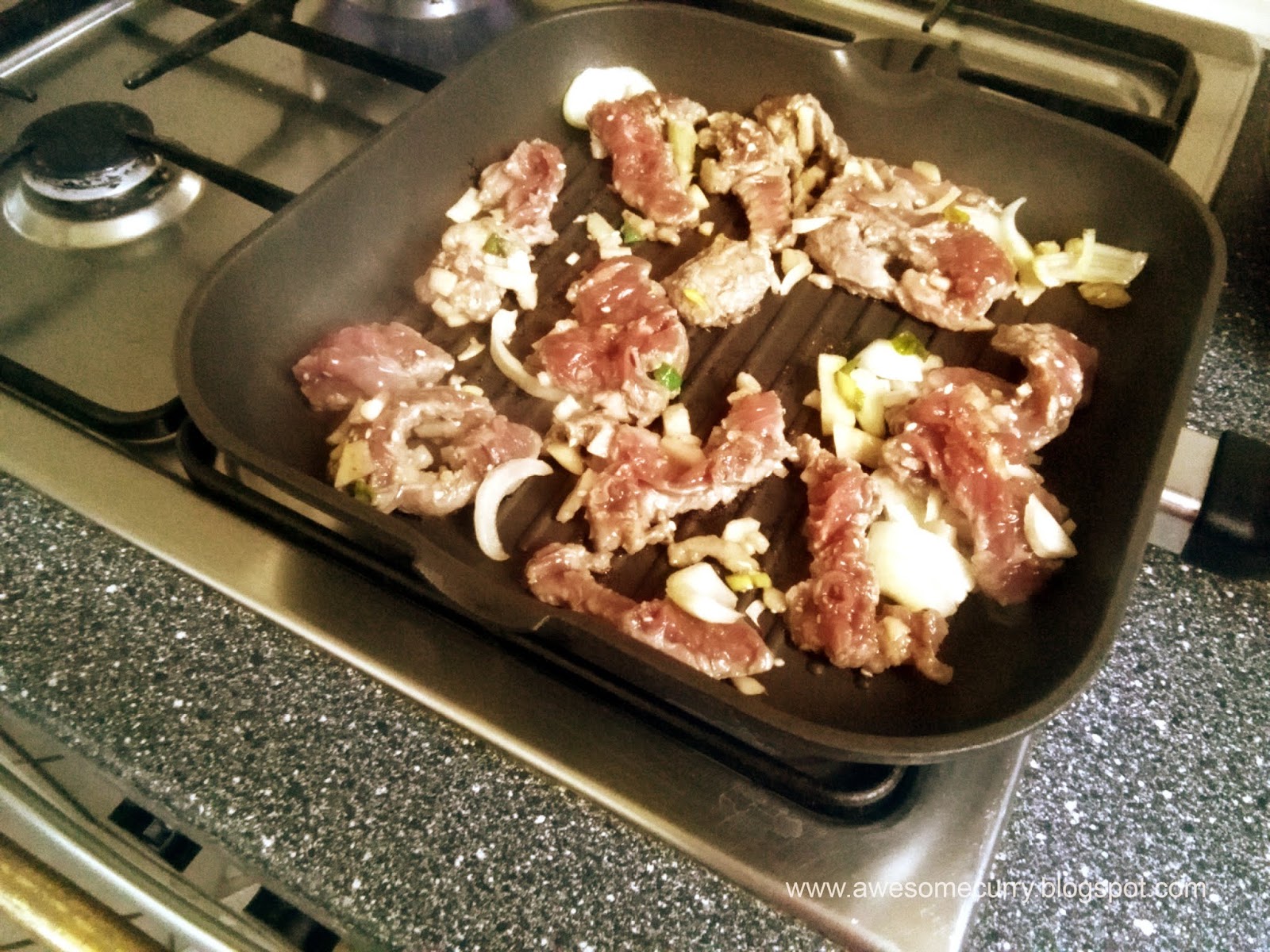 8. Если уж совсем занудствовать, то бульгоги надо готовить на решетке-гриль, накрыв ее фольгой.  Но можно взять и обычную сковородку. Я использовала сковороду-гриль и не пожалела.