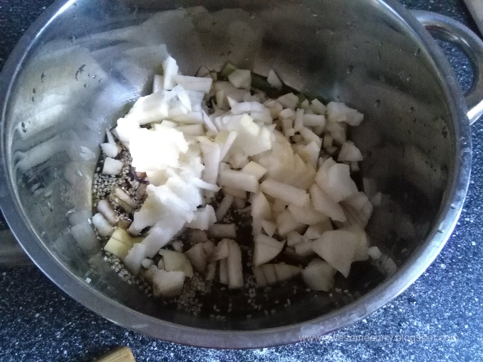6. Туда же отправьте сахар, черный перец и кунжут, если вы еще это не сделали.