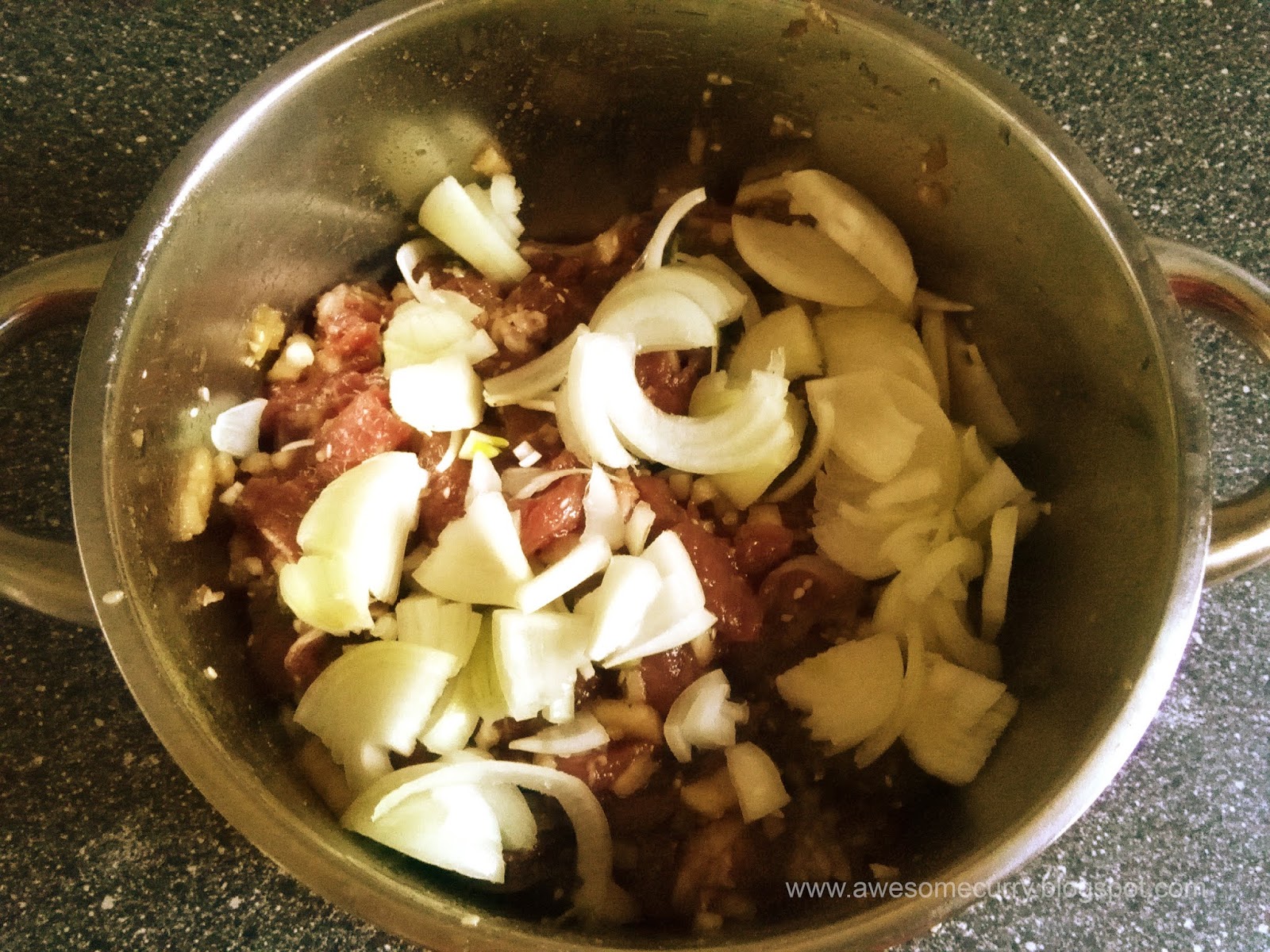 Перед самой готовкой добавляем к смеси лук. Проверяйте время от времени состояние мяса. Если вы используете в качестве фруктовой части киви или кислое яблоко, ваше мяско за час может стать даже слишком мягким.