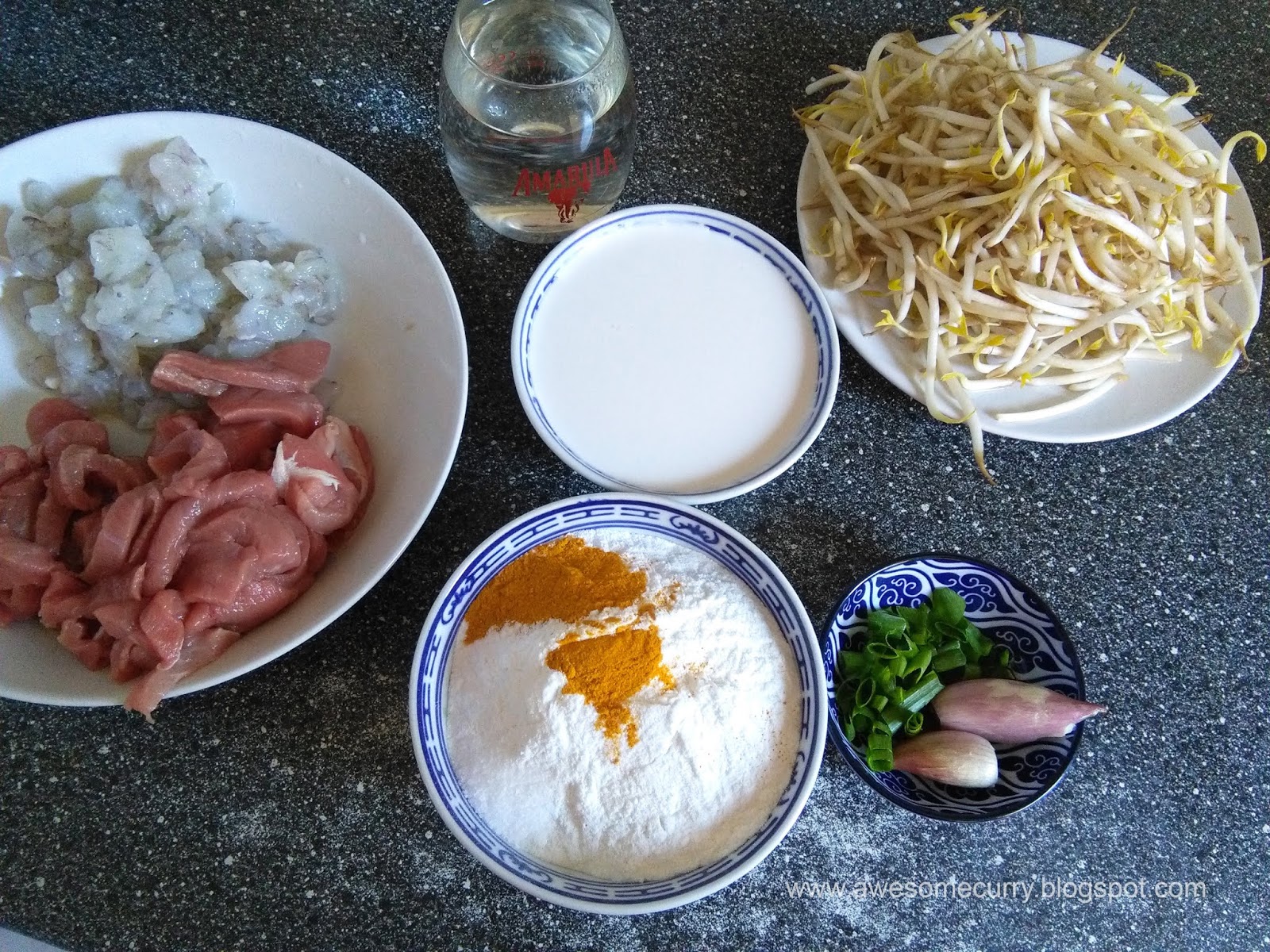1. Рисовая мука. В рецептах, которые я выкладывала до сих пор, мы использовали клейкую рисовую муку. Так вот, здесь она не подойдет. Вам нужна мука из обычного риса. Ее легко достать в азиатских лавочках или магазинах здорового питания. Заменить вряд ли чем-то получится. Можно конечно сделать блин полностью из пшеничной муки, но.. но-но-но, Бан Сео – это рисовый блинчик, как ни крути.