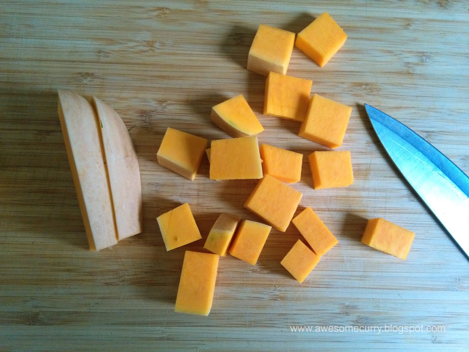 3. 500 гр кусочек тыквы. Лучше выбрать сорт с твердой мякотью, устойчивой к варке в карри.