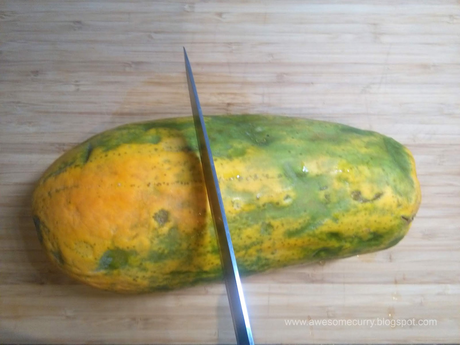 Итак, покупаем папайю, оставляем ее дозревать, наливаться соком, вкусом и цветом и, когда фрукт выглядит уже достаточно спелым (т.е. максимально непрезентабельно) – приступаем к нарезке.