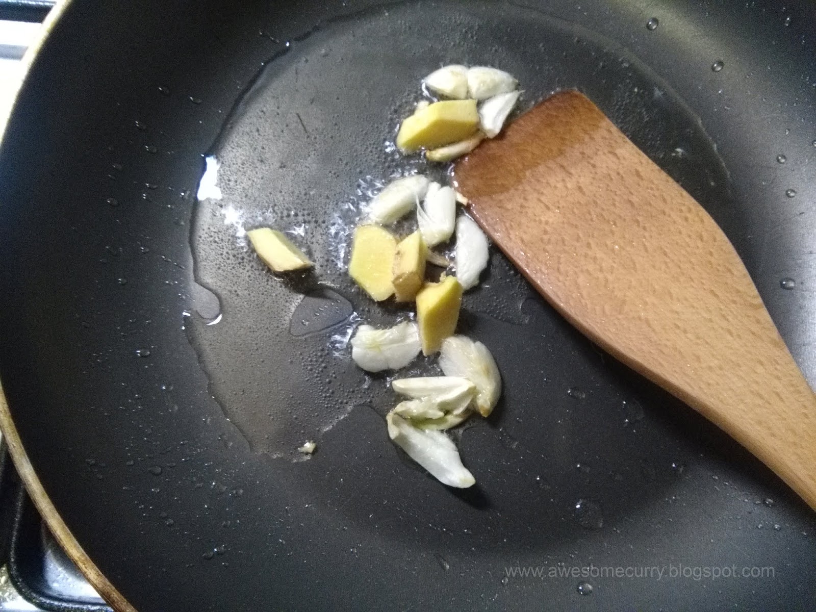 5. В большой сковороде или воке нагрейте примерно 1.5 ст.л. растительного масла. Как только масло станет достаточно горячим, но еще не перегретым, добавьте в него чеснок и уменьшите огонь. Обжаривайте чеснок в масле на медленном огне около 30 секунд, чтобы он отдал свои ароматы. Чеснок не должен подгореть.