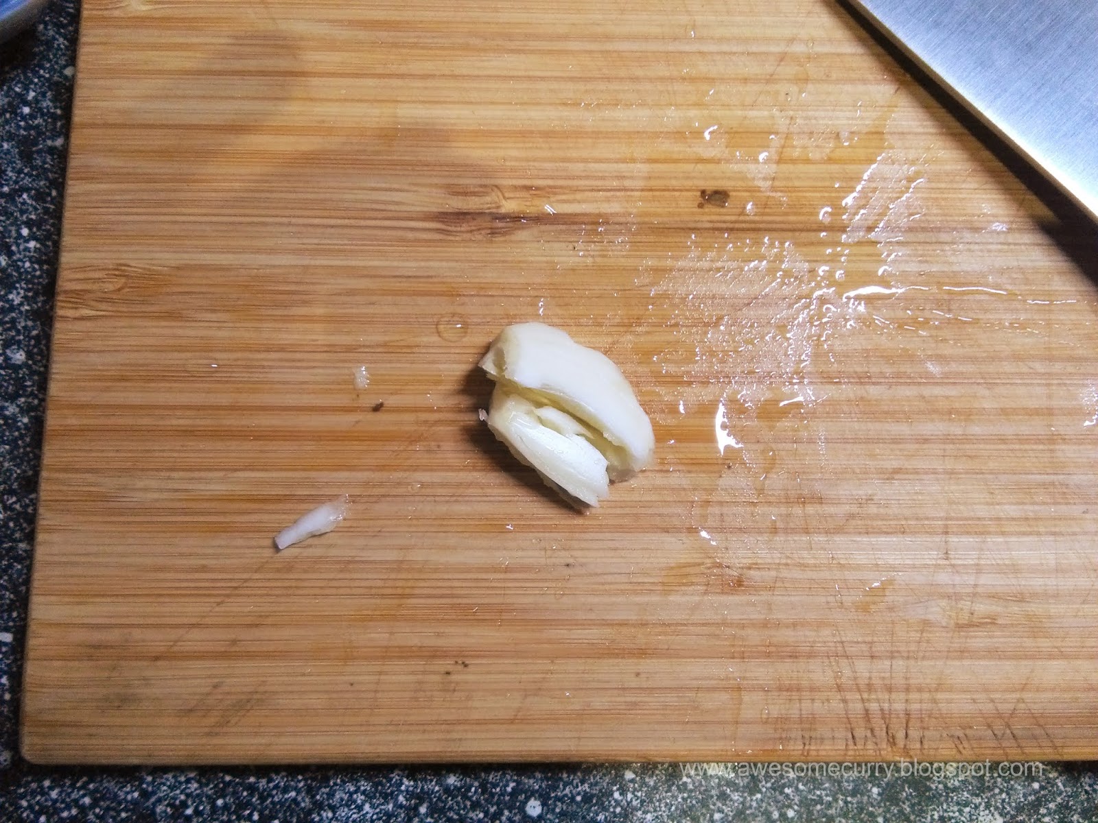 4. Чеснок подготовьте типичным китайским методом: не измельчайте, просто раздавите зубчики плоской поверхностью ножа, как бы сплющивая их.