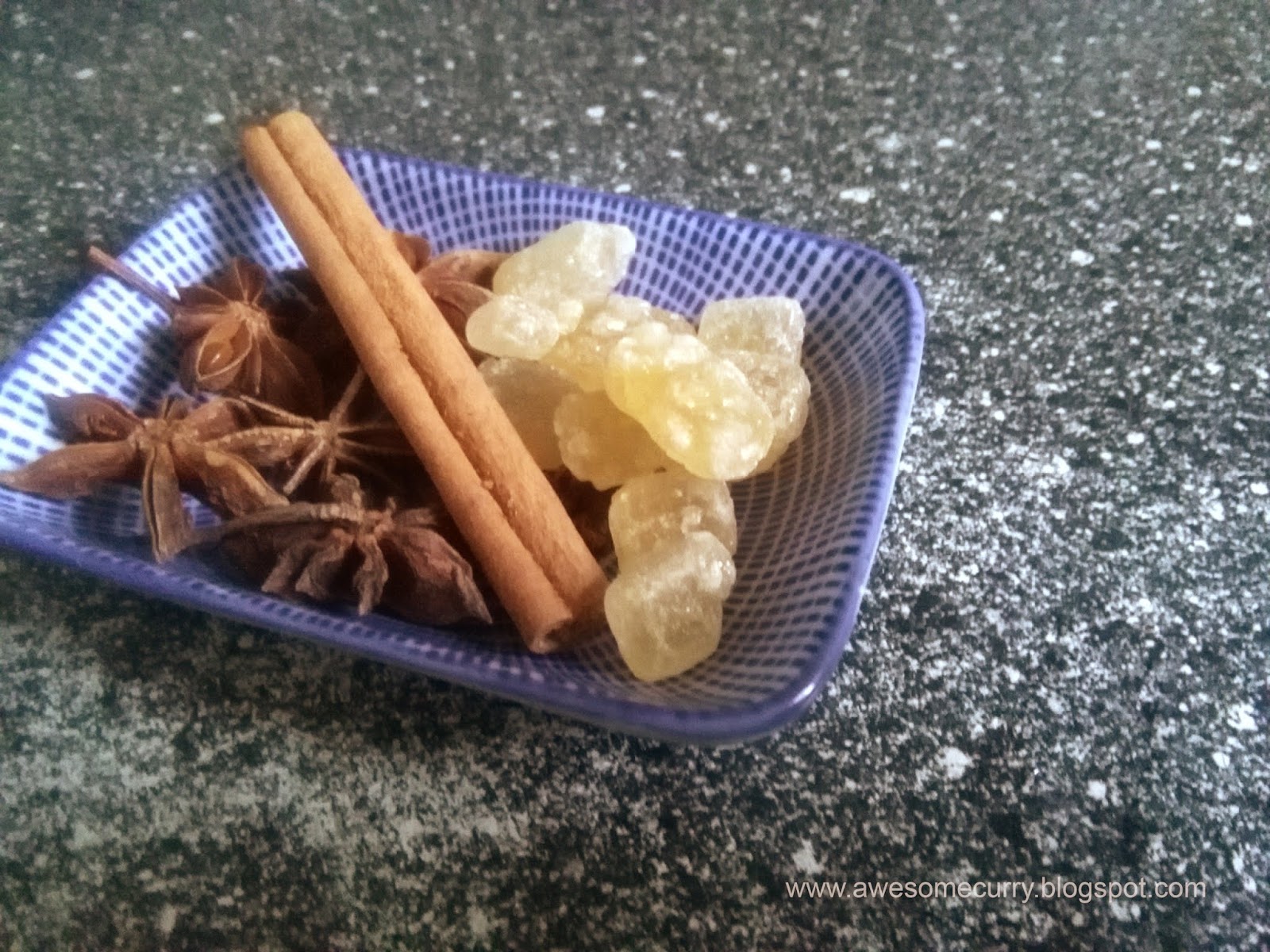 2. На той же горячей сковороде/гриле/конфорке прокалите анис, гвоздику и корицу пока они не высвободят аромат, около 1 минуты. Снимите с огня.