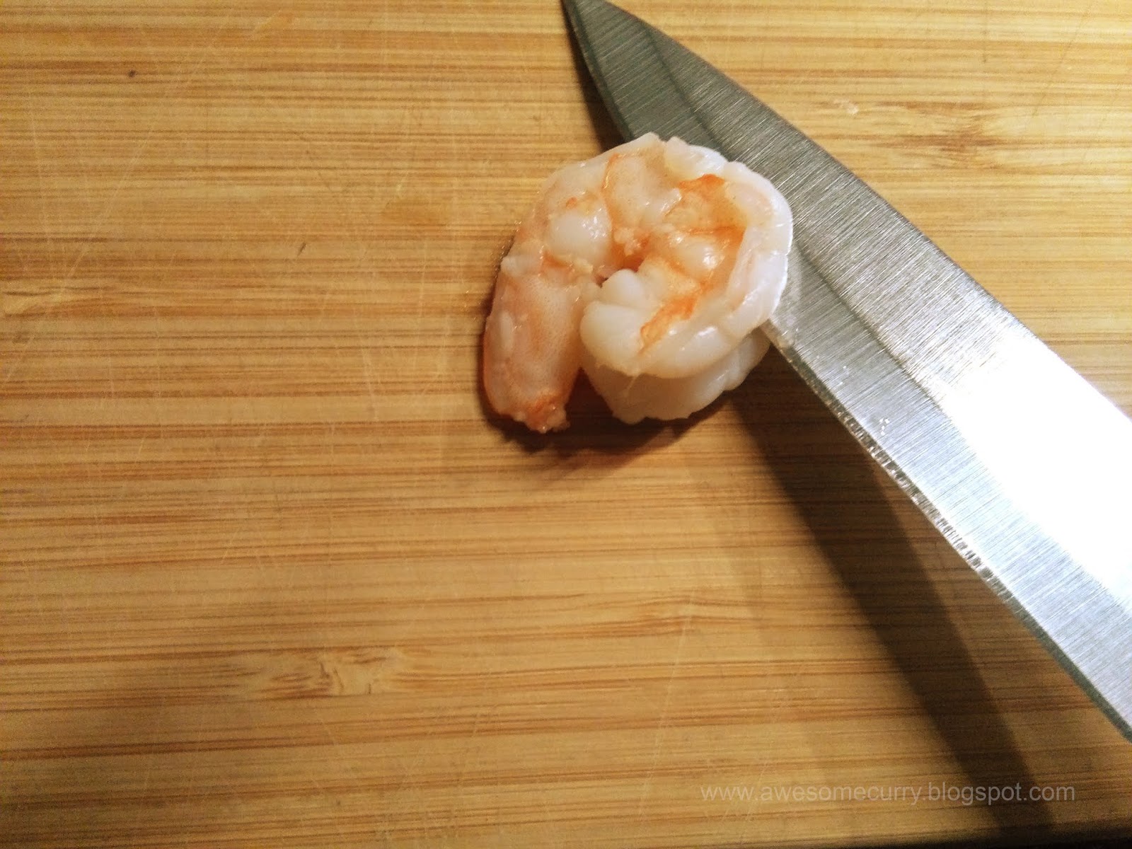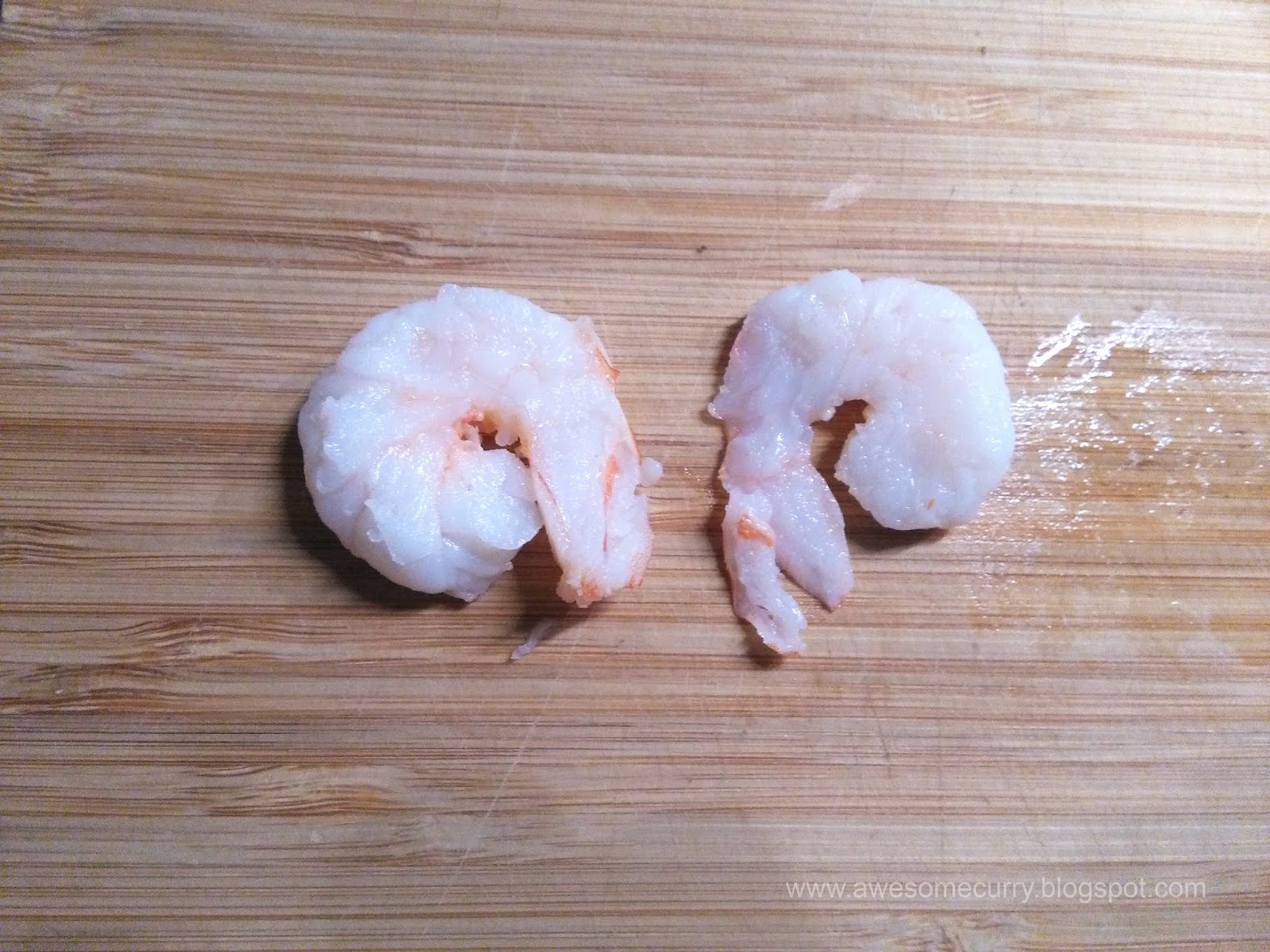 1. Подготавливаем креветки. Чистим их, если они не очищенные, вынимаем кишечную вену, отвариваем в подсоленной кипящей воде 3-5 минут. Каждую креветку разрезаем пополам вдоль.
