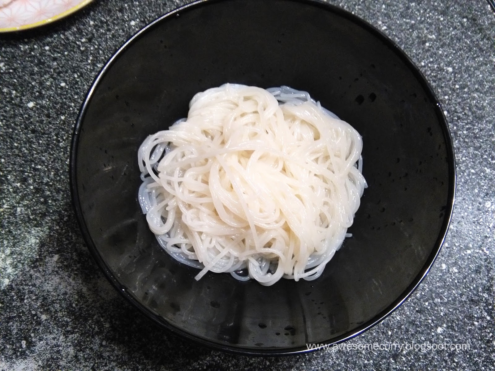 4. Отвариваем рисовую лапшу в подсоленной кипящей воде по инструкции на упаковке, в моем случае 6 минут, промываем в холодной воде.