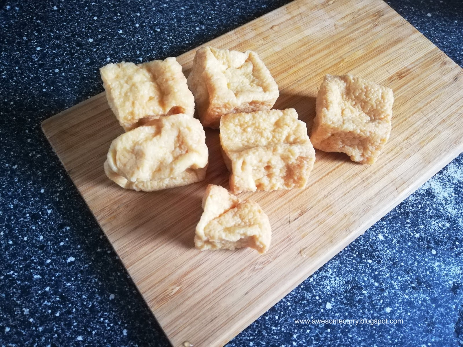 Жареный тофу в кухнях Азии продукт крайне популярный. Это легкий соевый творог, жареный во фритюре в кипящем масле, после чего он приобретает крайне замечательную губчатую текстуру, которая приятно ощущается в готовом блюде а также идеально впитывает вкусные соусы, вместе с которыми готовится тофу. Соевый творог замачивают на некоторое в специях, после чего обжаривают в масле, упаковывают в вакуум и продают в таком виде в магазинах. Жареный тофу добавляют в супы, карри, стирфраи и много где еще, а уж количеству прекрасных вегетарианских блюд с его участием несть числа.