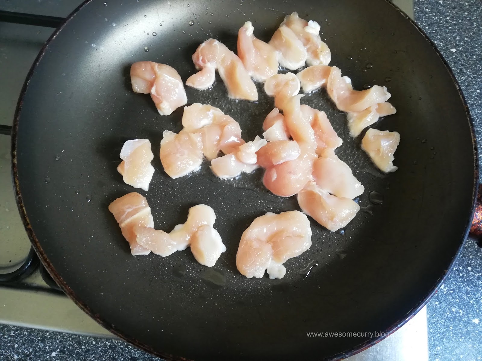 1. Слегка подсолить куриную грудку и обжаривать на хорошо разогретой сковороде в небольшом количестве масла около 2 минут, затем перевернуть и обжаривать еще 2 минуты.