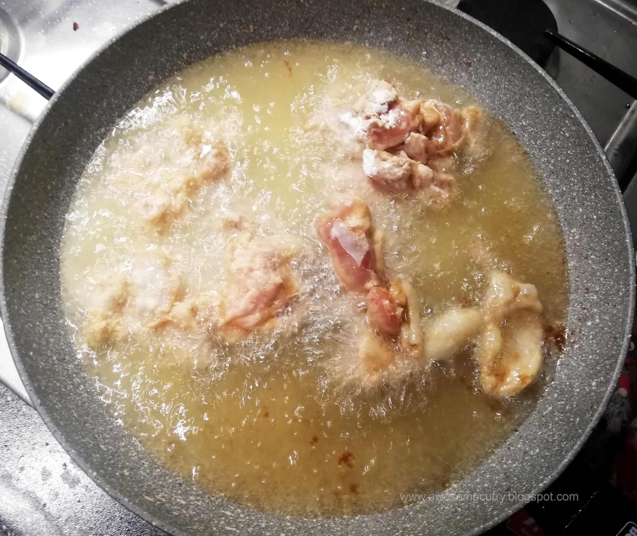 4. Разогрейте в глубокой сковороде или воке достаточное количество масла, чтобы курица в нем могла свободно себя чувствовать.