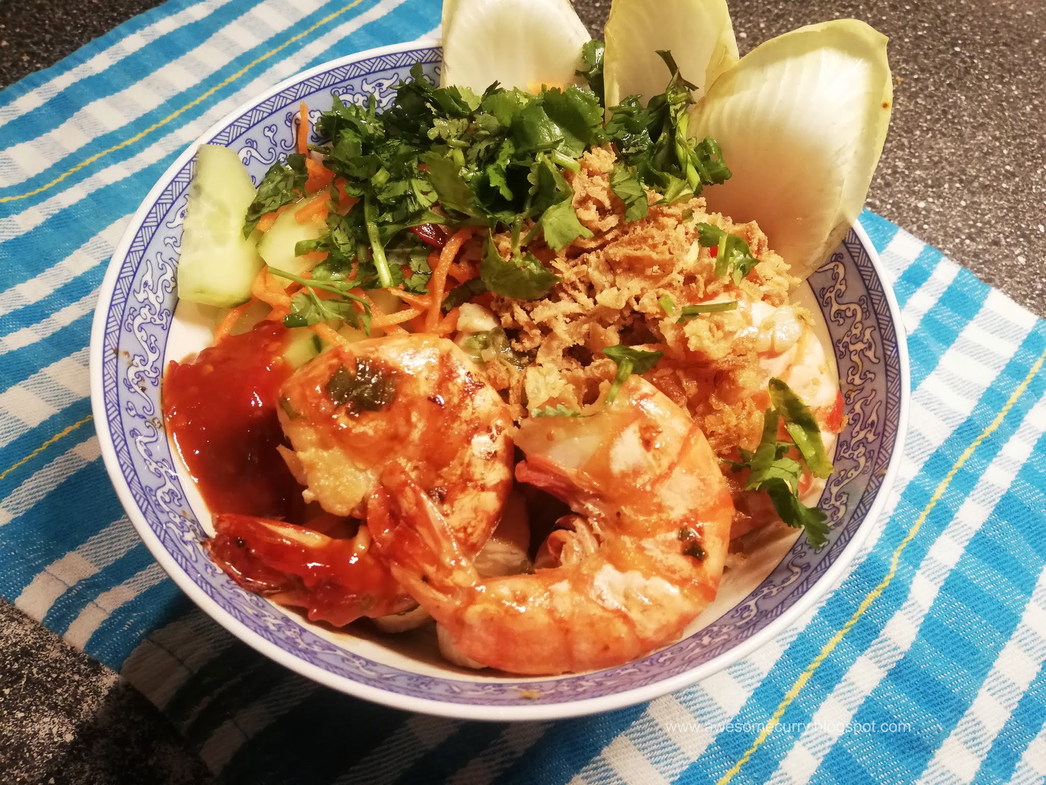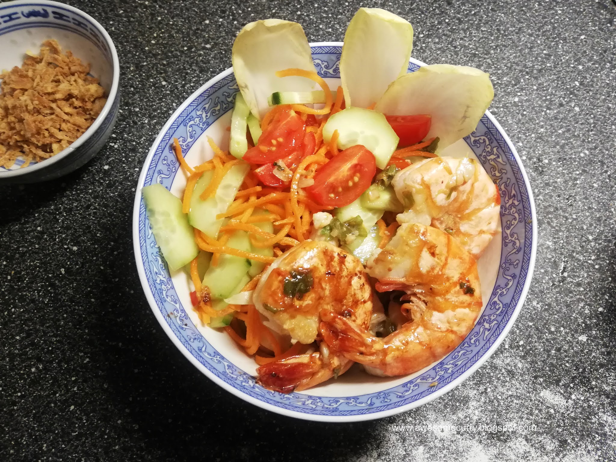 Тем не менее, я обожаю салаты с тонкой рисовой лапшой, они позволяют легко комбинировать вкусы, ароматы и кулинарные тенденции, и особенно хороши если добавить ложечку-другую ароматного острого соуса самбал.