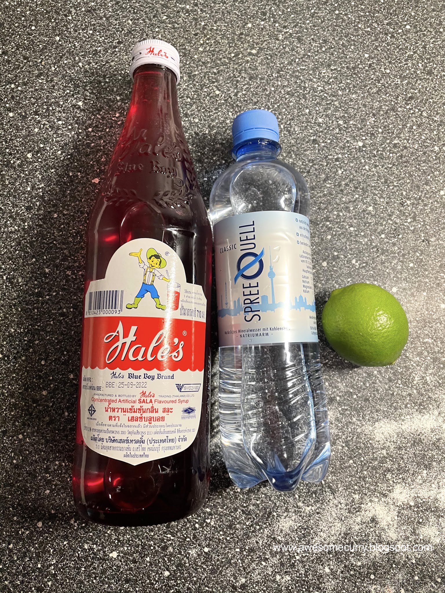 Подавляющее большинство подобных напитков готовится на основе любимого в Тае бренда сиропов с разными вкусами, я говорю о цветной сладкой жидкости в бутылке с изображением счастливого мальчугана. Hales Blue Boy.