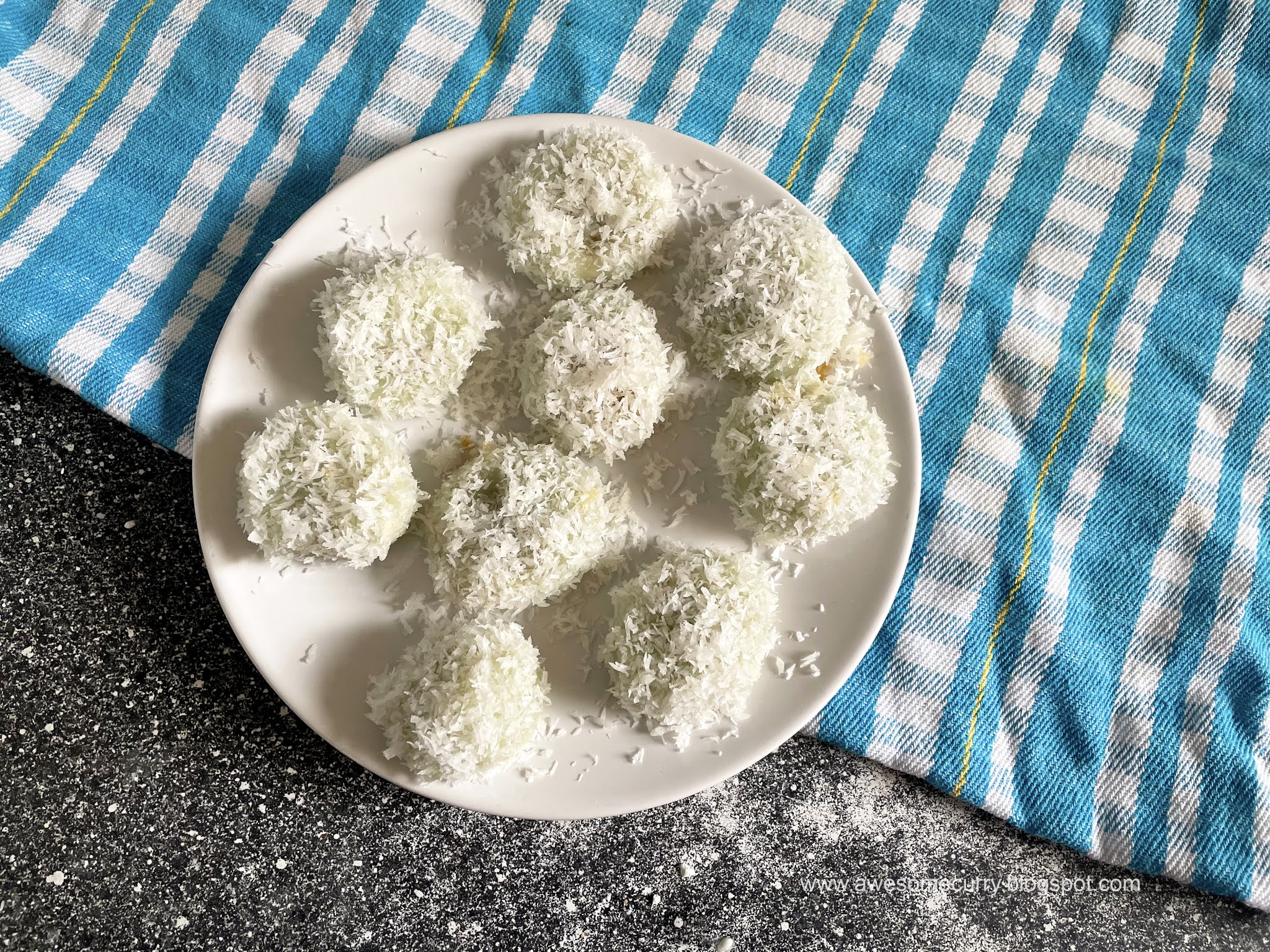 Муку из клейкого риса можно купить в азиатских лавочках и магазинах здорового/органического питания, а также, думаю, в некоторых индийских лавочках. Она идет под названиями Glutinous rice powder/ Sticky rice powder. Заменить ее в этом рецепте нельзя, мука из клейкого риса – основа данного десерта.