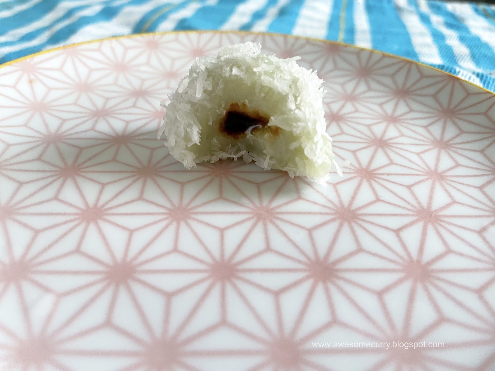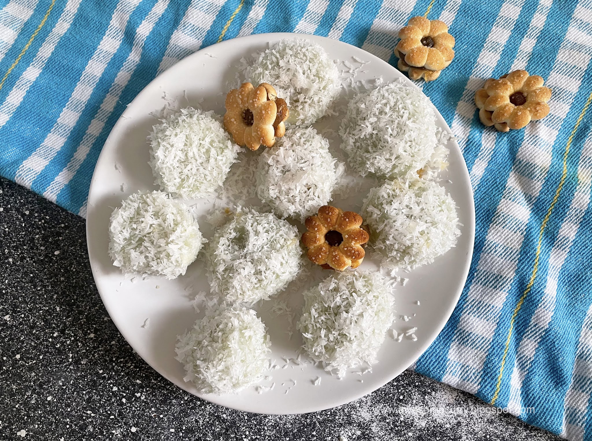 Популярные индонезийские сладости-стритфуд, соединяющие в себе главные вкусы Юго-Восточной Азии: пандан, кокос, рис и пальмовый сахар. Иконный снэк, переносящий своим вкусом в жаркие тропики. Эти шарики бывают с разными начинками. Самые популярные вариации – с кокосом, либо с жидкой массой из пальмового сахара. Мы сегодня приготовим вторую разновидность. Начинка из пальмового сахара немного жидкая и создает приятный контраст текстур и вкусов, превращая поедание десерта в маленькое приключение.