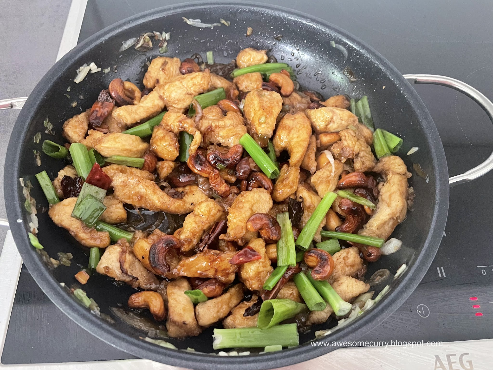 Основные ингредиенты стир фрая в этом случае подготавливаются отдельно, обжариваются до готовности и только потом соединяются в основное блюдо. Такой способ приготовления позволяет достичь максимально приятного результата, сочной грудки с хрустящей корочкой и хрустящих орехов. И курице, и кешью нужно много места при обжаривании, поэтому приготовить их по отдельности до оптимального состояния – лучшая стратегия для получения ресторанного уровня результата.