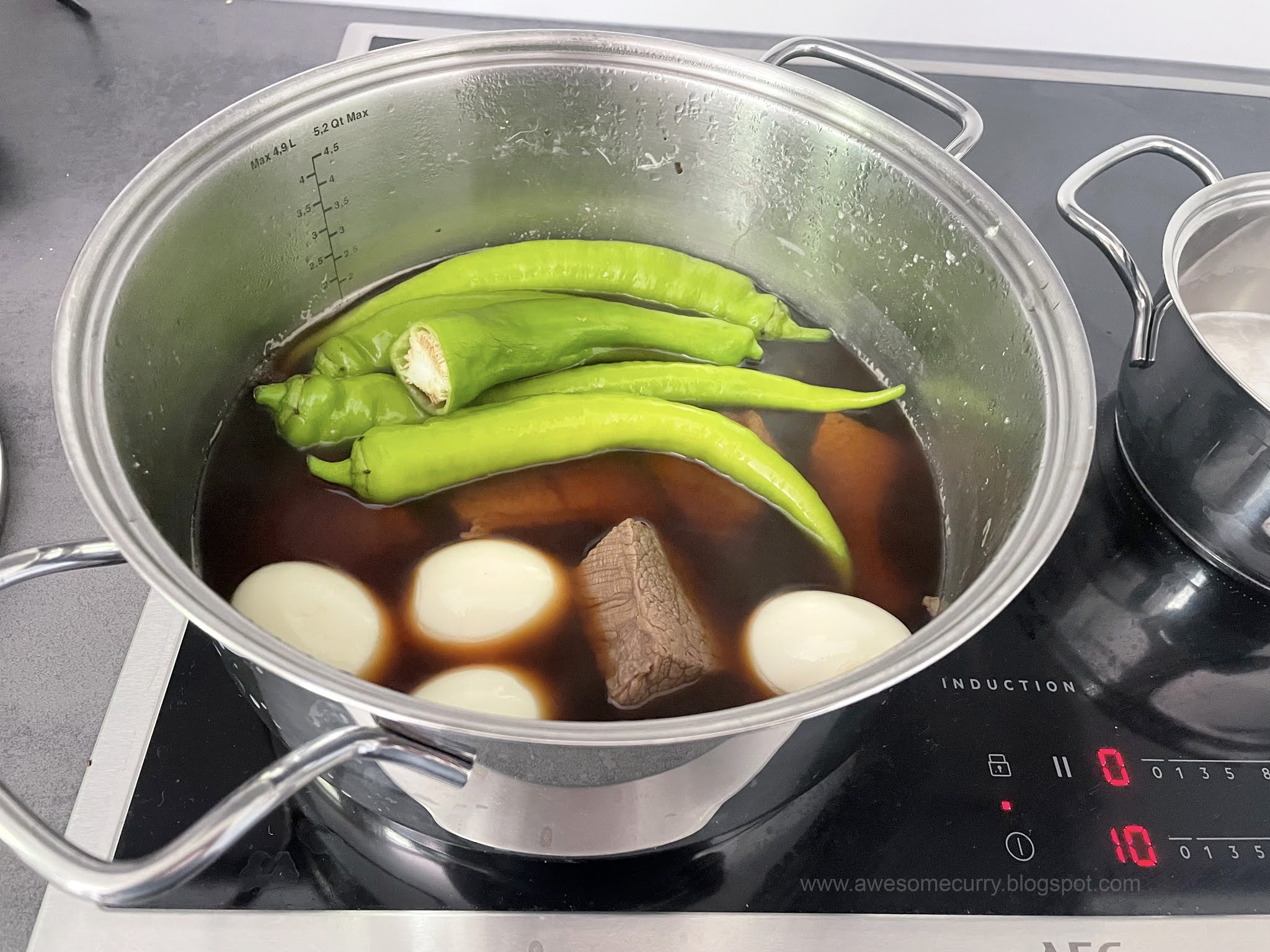 Их можно купить как в азиатских магазинах, так и в супермаркетах и на рынках можно заменить похожими или даже более крупными зелеными перцами с легкой или средней остротой. Помните что перцы чили или халапеньо будут слишком острыми для этого блюда, сильно уменьшайте количество.