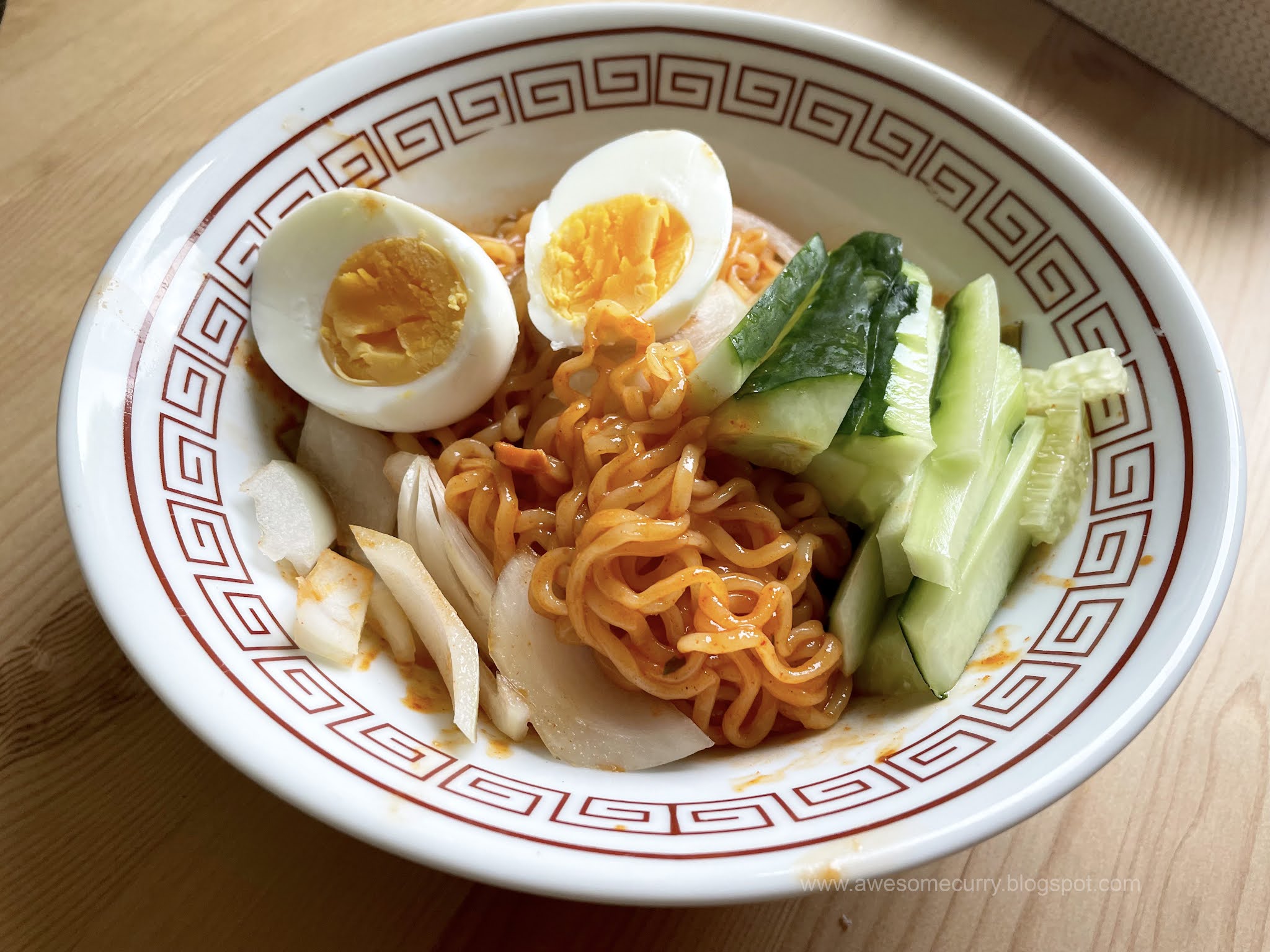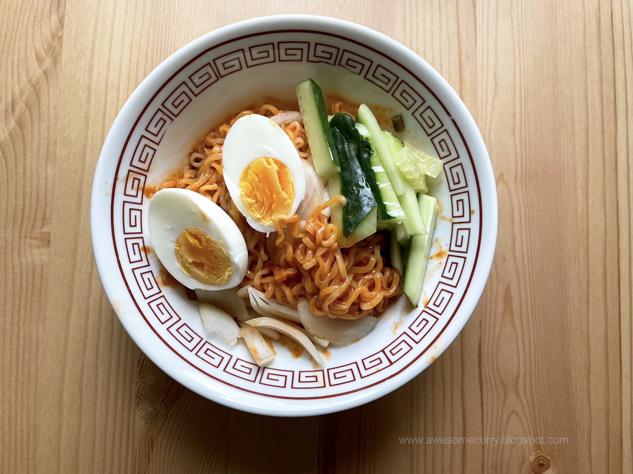Это классика острого холодного рамена – согласно корейским традициям – идеального блюда, чтобы есть в жаркий день, так как острое считается способным охлаждать организм. Лапша получается очень вкусной, типично корейской, и готовится буквально за пару минут.